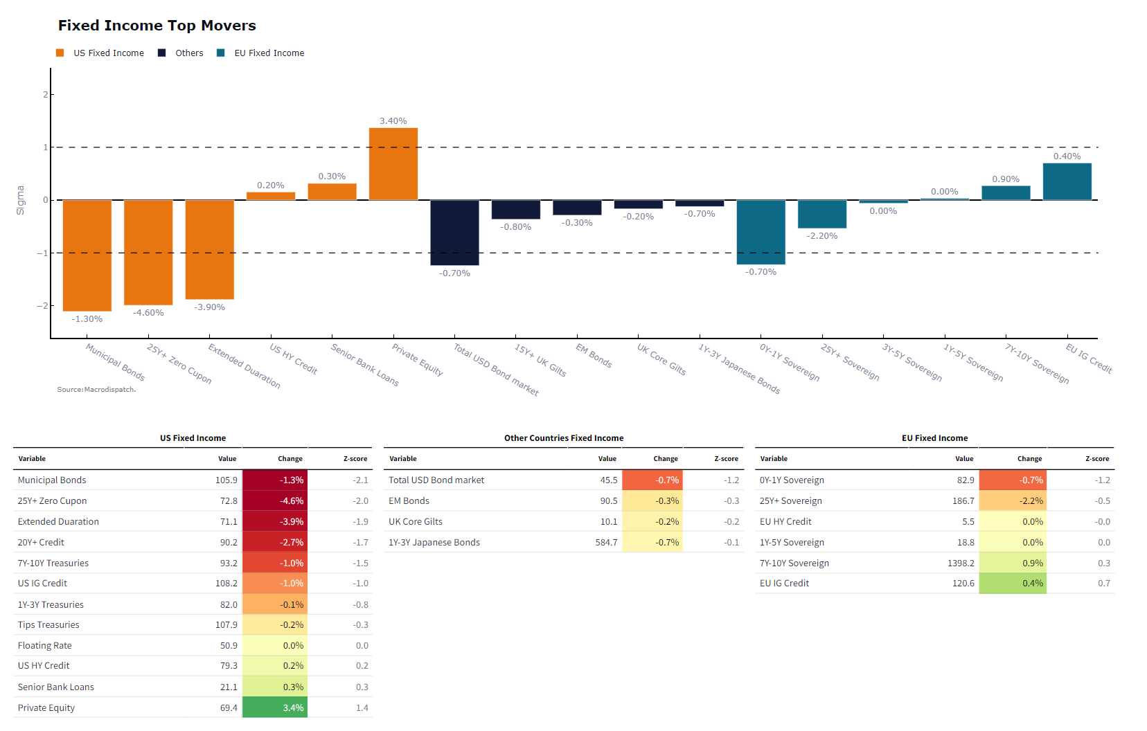 The biggest losers are the Euro and US fixed-income securities with long duration, which reflect the pricing in of higher inflation expectations and fewer Fed cuts.