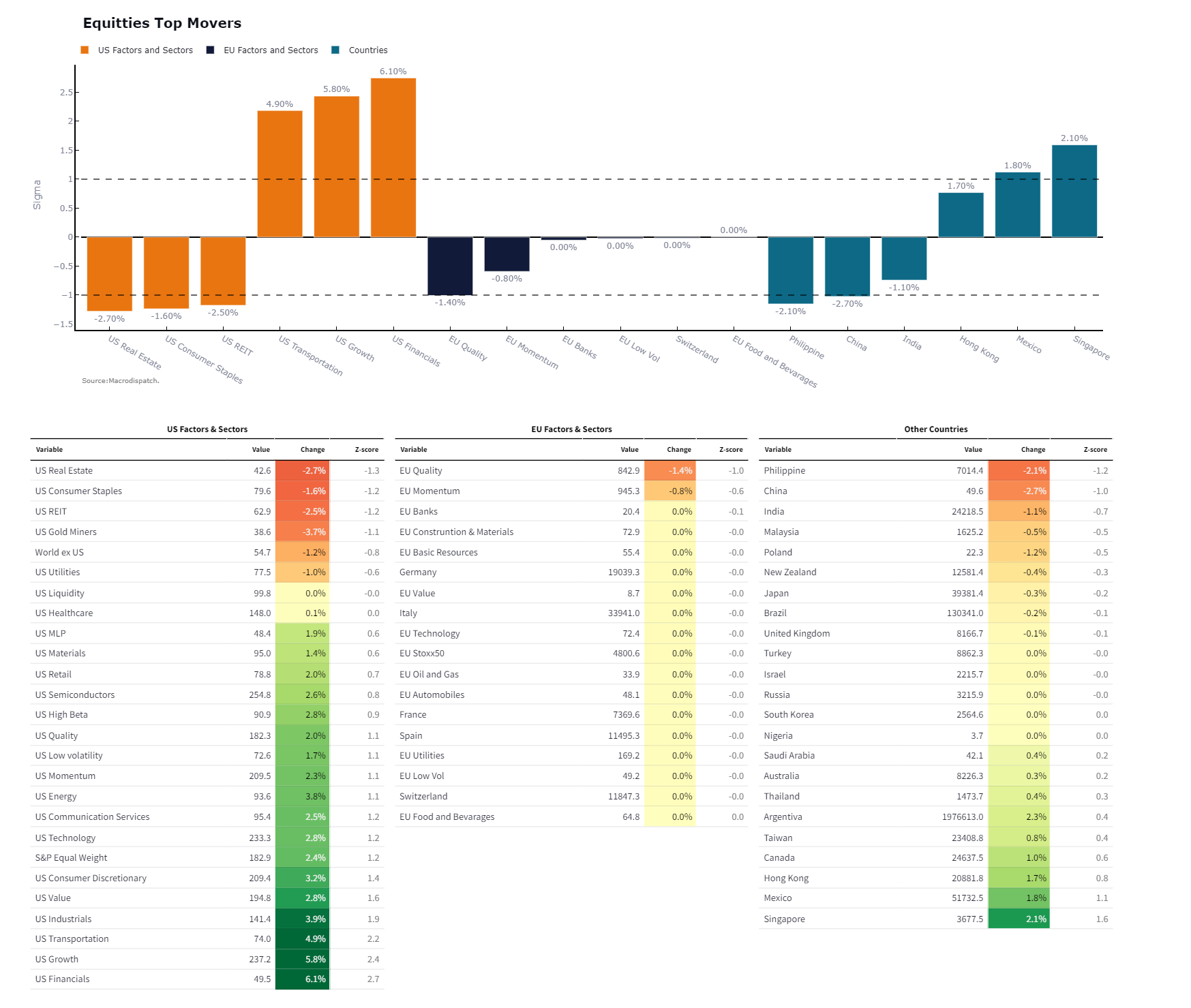 From all of this data, we can Filter a list of the worst-performing and best performing vol-adjusted cross-asset moves for these specific elections without getting too deep into the weeds of single-name equities.