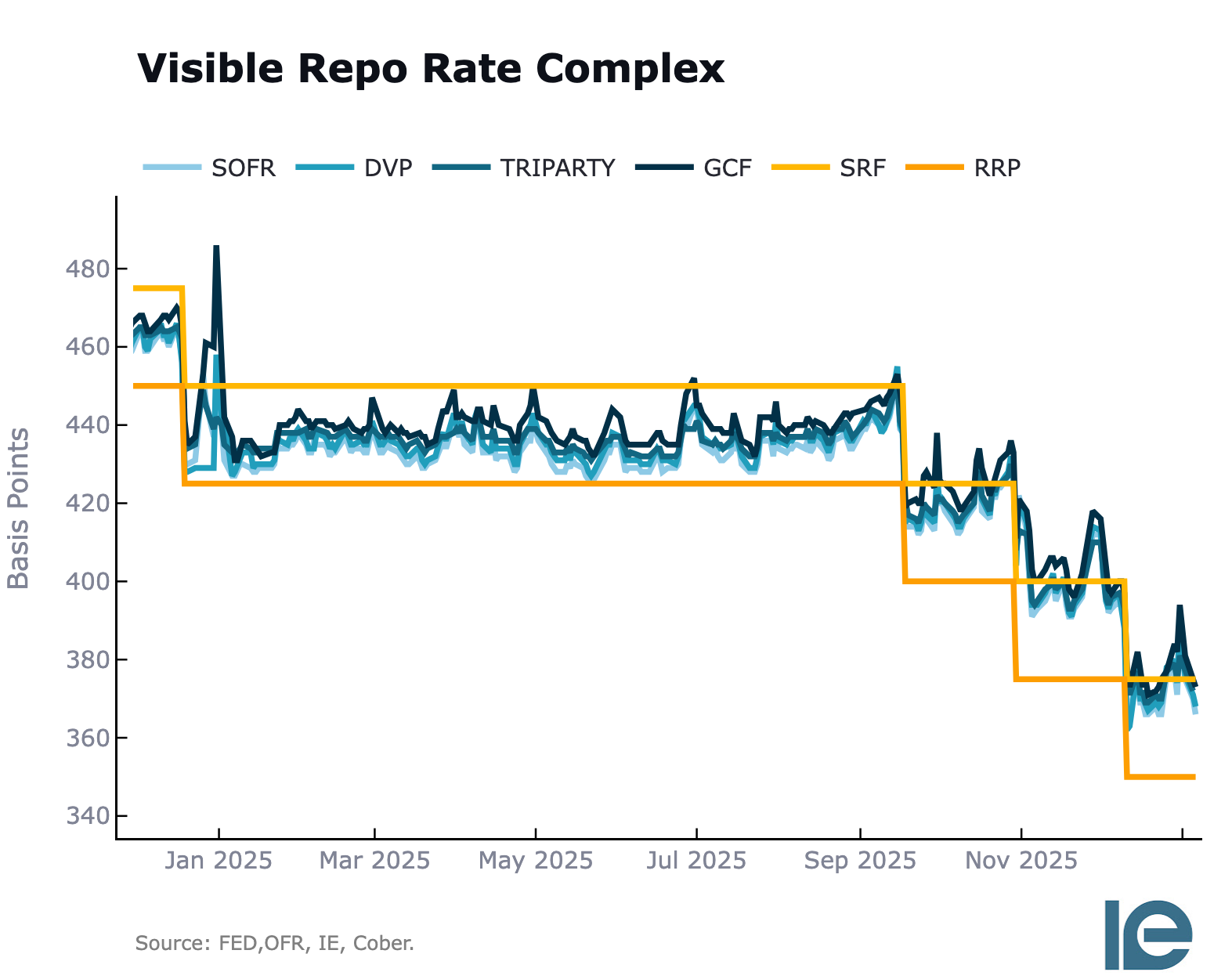 Except throughout 2025, repo rates traded above the standing repo facility constantly. On December 31st of 2024, we saw rates 38 basis points above the facility. Even during regular periods, rates stayed persistently elevated above what should be the upper bound. Quarter and month ends saw the most significant spikes, but the pattern appeared across the board.