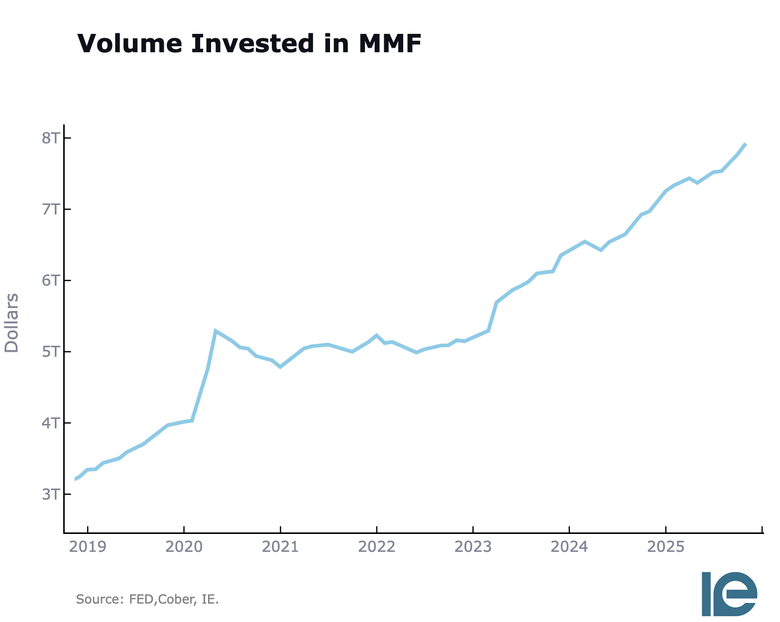 Meanwhile, money market funds grew by roughly a trillion dollars through 2024, reaching over eight trillion.